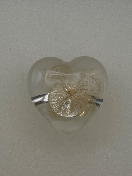 Bague avec fleur séchée incrustée dans la résine.