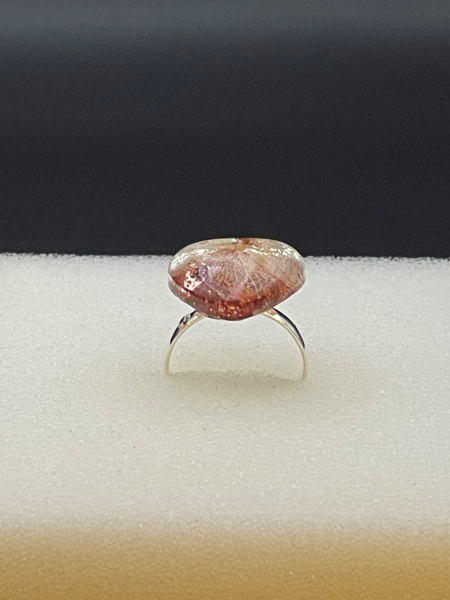 Bague avec fleur séchée incrustée dans la résine.