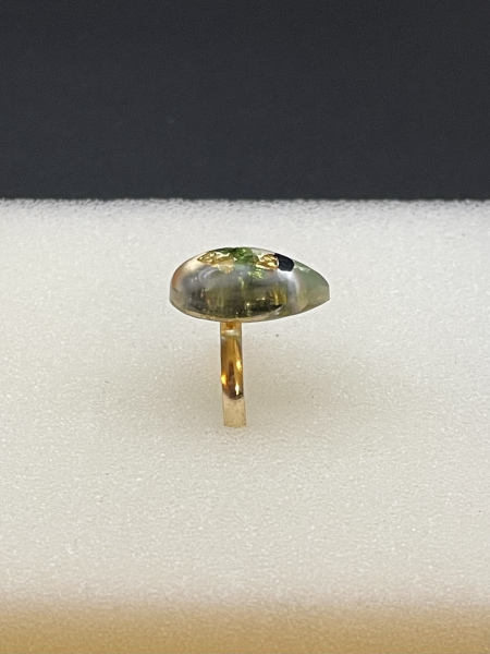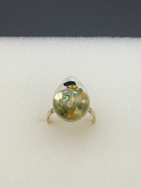 Bague avec pierres de verre concassées incrustées dans la résine.