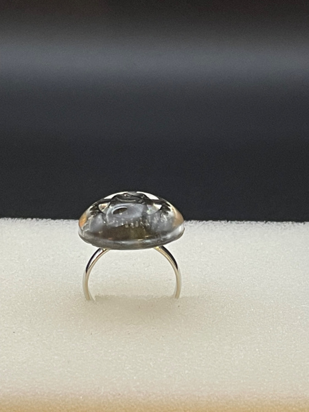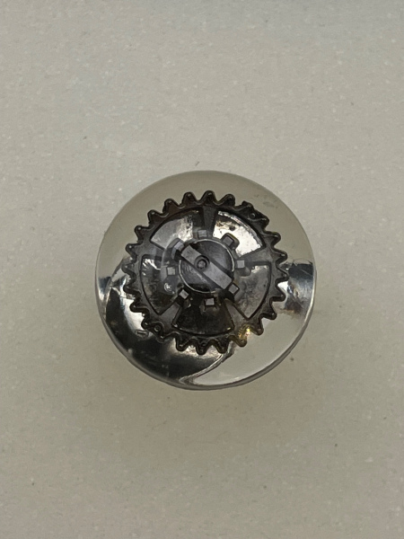Bague avec engrenage incrusté dans la résine.
