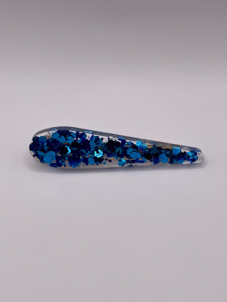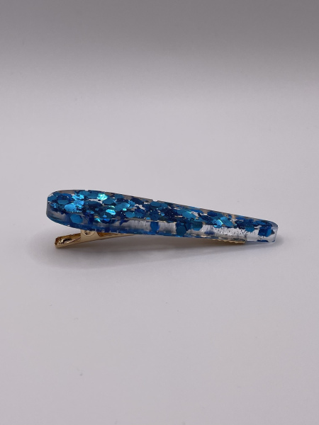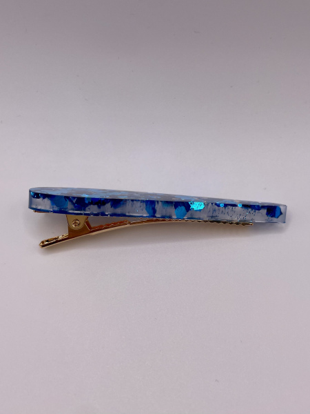 Barrette crocodile avec paillettes délicatement incrustées dans la résine.