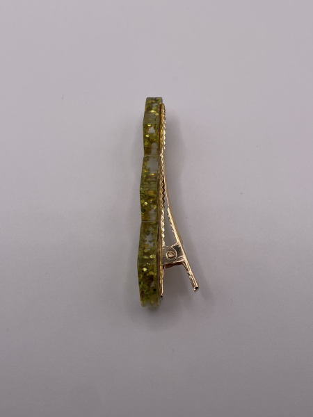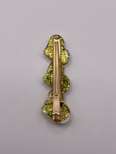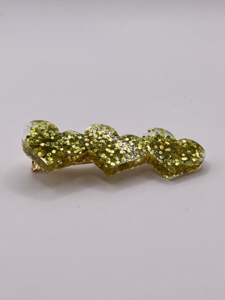 Barrette crocodile coeurs avec paillettes délicatement incrustées dans la résine.