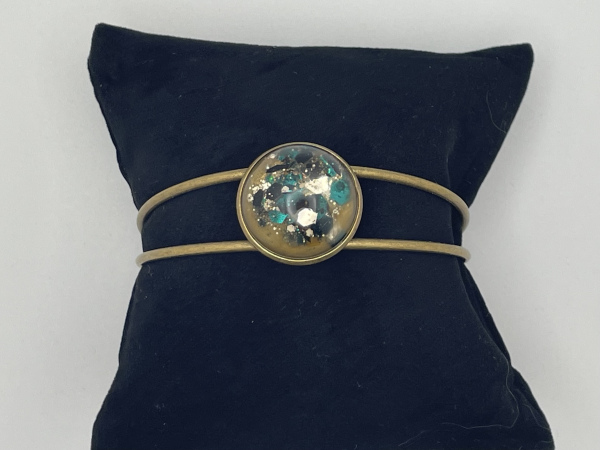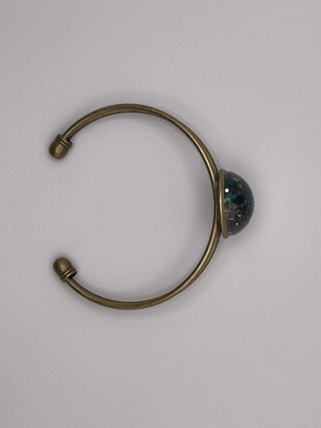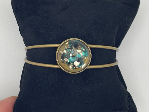 Bracelet jonc de largeur ajustable. Paillettes incrustées dans la résine.