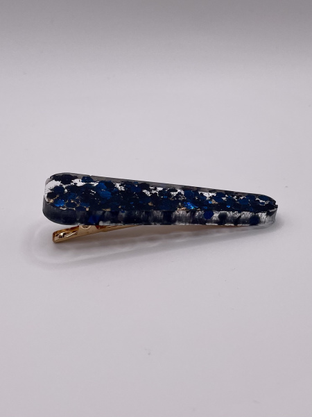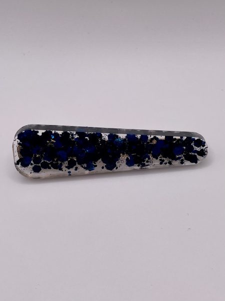 Barrette crocodile avec paillettes délicatement incrustées dans la résine.