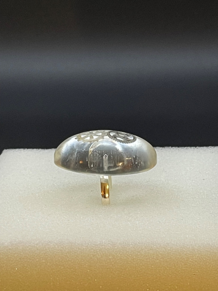 Bague avec engrenages incrustés dans la résine.
