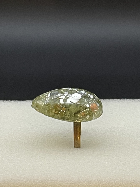 Bague avec paillettes incrustées dans la résine.