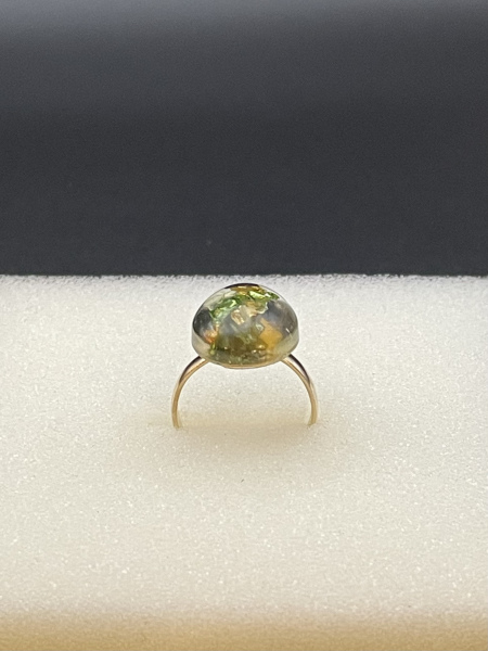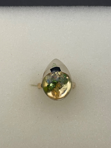Bague avec pierres de verre concassées incrustées dans la résine.
