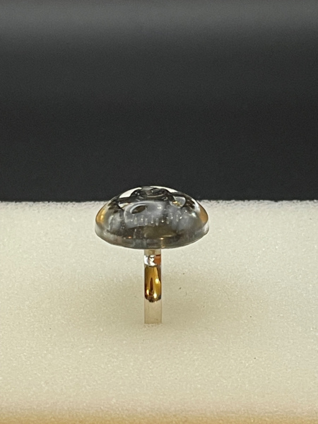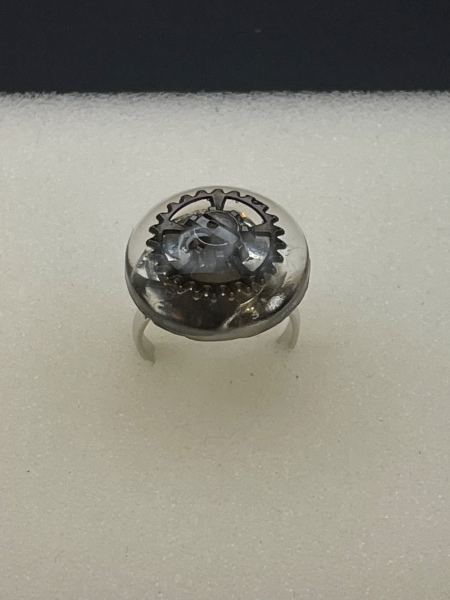 Bague avec engrenage incrusté dans la résine.