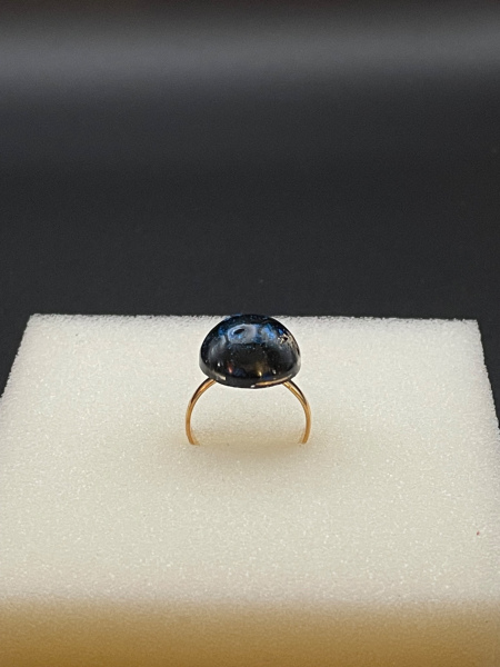 Bague avec paillettes incrustées dans la résine.
