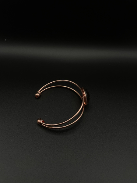 Bracelet jonc cabochon engrenage et paillettes bronze et marrons