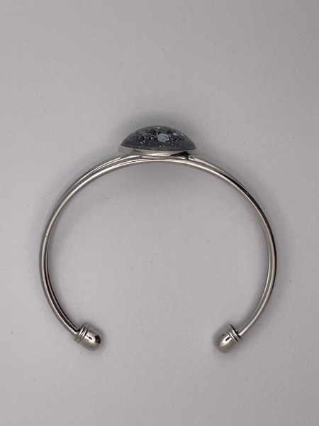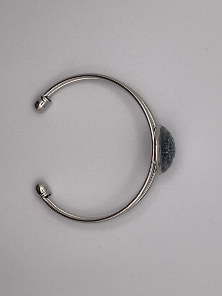 Bracelet jonc cabochon paillettes bleue et engrenage argent