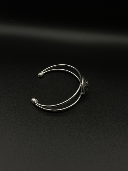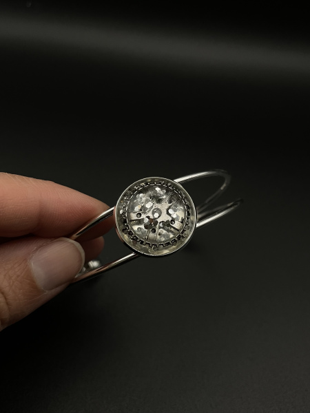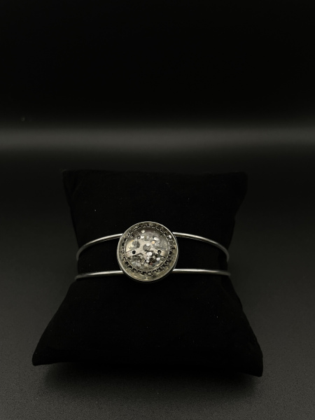 Bracelet jonc cabochon paillettes et engrenage argent